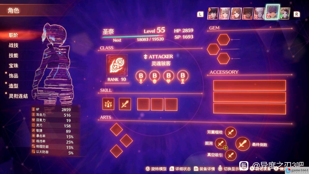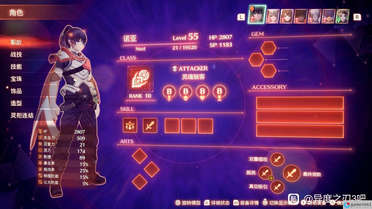 《異度神劍3》中的人物的基礎屬性是非常重要的,你只有了解這些人物的屬性才能確定他們到底適合什麼職業,比如暴擊率,格擋率,物理和以太防禦都是由職業決定,初始狀態下基本上都差不多。