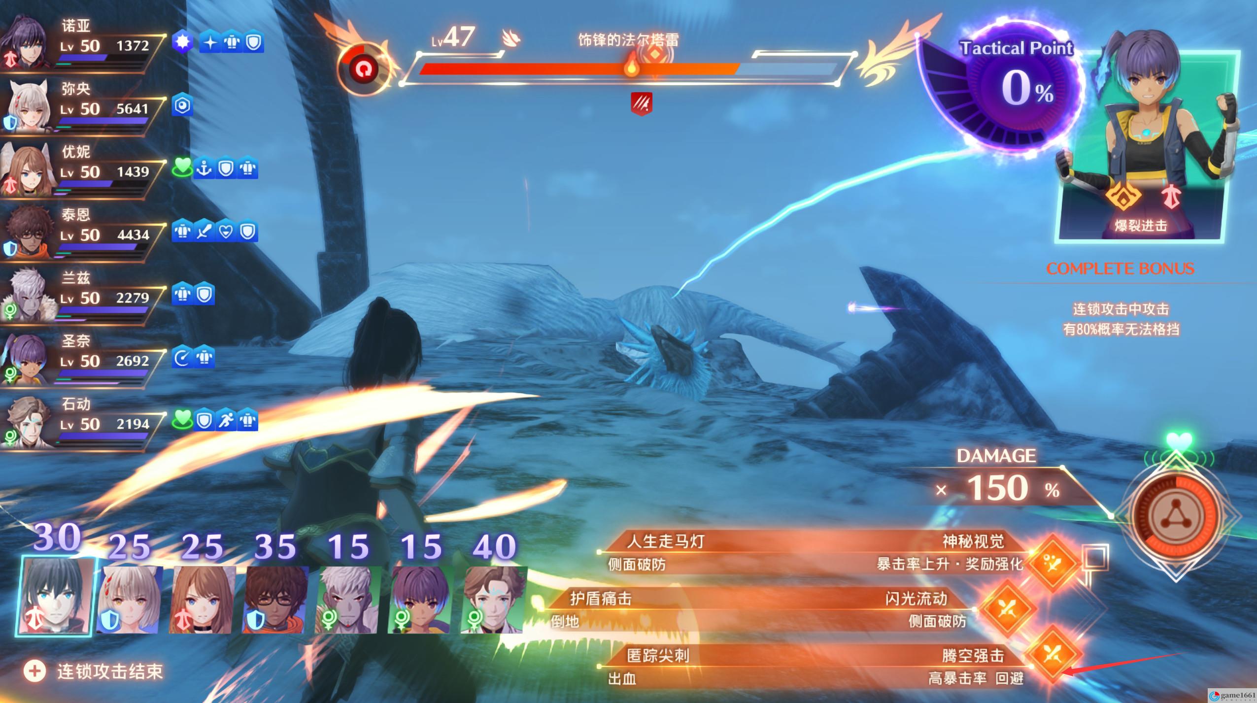 連鎖攻擊開始,每個人的TP如下,主攻有英雄選英雄,沒英雄的優先選諾亞(攻擊)>聖奈(攻擊)>同陣營的或者彌央。