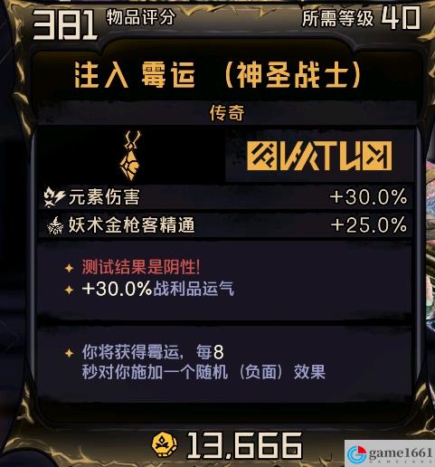 《小緹娜的奇幻之地》中的傳奇道具並不是都只有正面效果的,霉運就是這樣一個傳奇道具,會給你加30%的戰利品爆率,但是會在8秒內給你各種各樣的負面效果,實測是直接護盾和血量直接減半,紅字效果暫時未知。