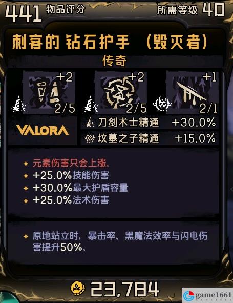 《小緹娜的奇幻之地》中的橙色傳奇裝備是很多的,不過適合炮臺玩家的不算多,鉆石護手就是其中一個,普通效果就是原地站立時,暴擊率、黑魔法效率與閃電傷害提升50%,紅字效果暫時未知。