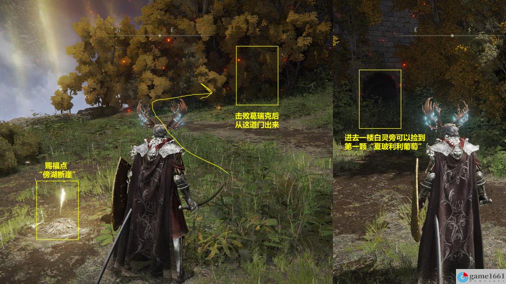 1、在利耶尼亞的「傍湖斷崖」賜福點旁,我們可以第一次見到海妲。和其對話,她會向我們索要 「夏玻利利葡萄」。按照主線流程,最早可以撿到的夏玻利利葡萄,在擊敗「接肢」葛瑞克後開啟的建築物內一樓的白靈旁邊。從傍湖斷崖賜福點向葛瑞克方向走,可以更快找到那個白靈。