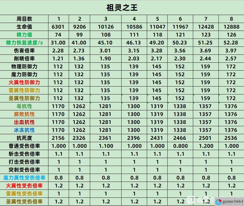 祖靈之王全數值抗性如下圖