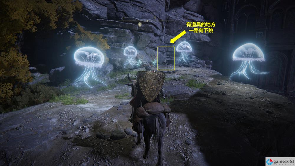 6、推進魔女菈妮任務線,依次完成擊敗拉塔恩、擊敗仿身淚滴、找到賜福點「祖靈森林」。向祖靈之王所在房間左邊不斷前行,可以到達希芙拉河導水橋。這條路上有很多水母,向著有水母的方向跑就好。