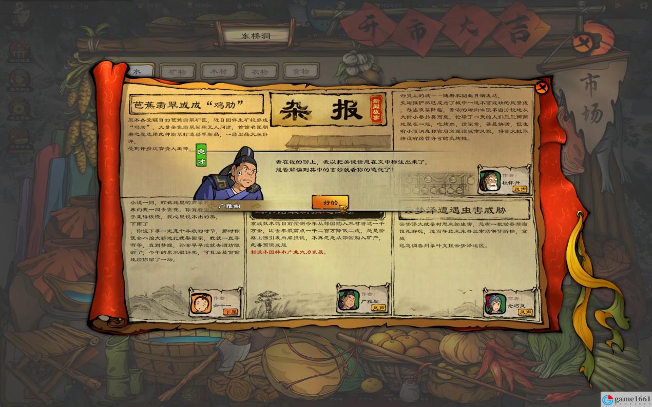 除了觀察物資價格走勢,亦可以結合雜報功能預測市場價格變化,掌握市場規律,根據雜報中提供的信息對未來消息及價格走向進行預估,注意,消息中可能有的是假情報哦!需要各位玩家自行判斷並做出相應選擇。