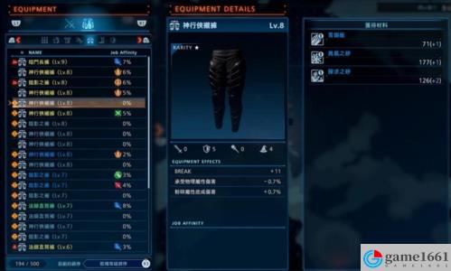 材料可以用來強化裝備的附加能力。