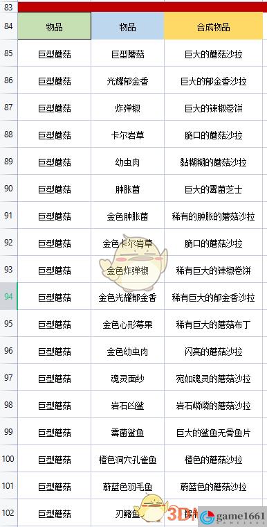 《地心護核者》巨大蘑菇類烹飪菜譜大全