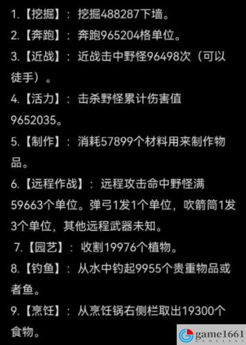 【遠程作戰】:遠程命中野怪滿59663個單位。彈弓1發1個單位,吹箭筒1發3個單位,其他遠程武器未知