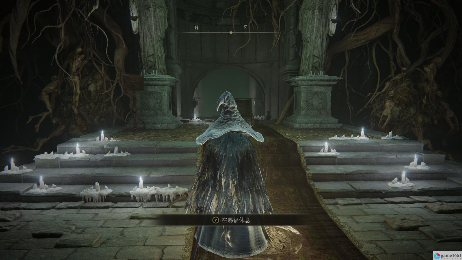 從賜福【棄置惡兆的大教堂】出發,攻擊寶箱後的墻壁打開隱藏道路。