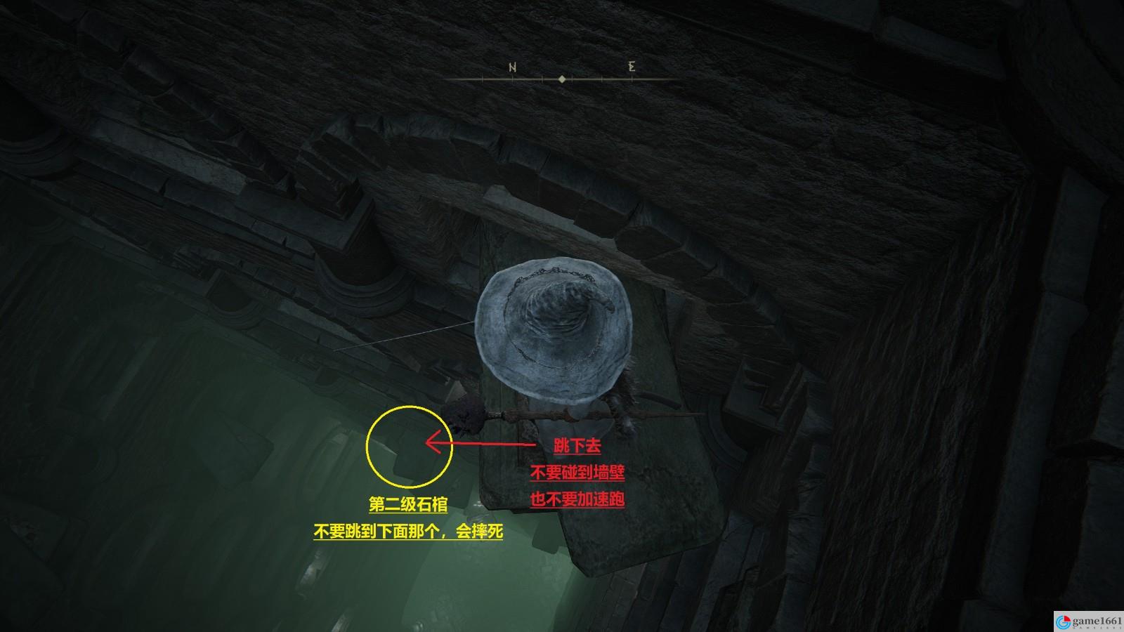 然後需要輕輕跳到第二級石棺上。要點:不要加速跑,快到邊緣正常跳就行。盡量不要蹭到墻壁。此步驟難度最大,後面都簡單了。