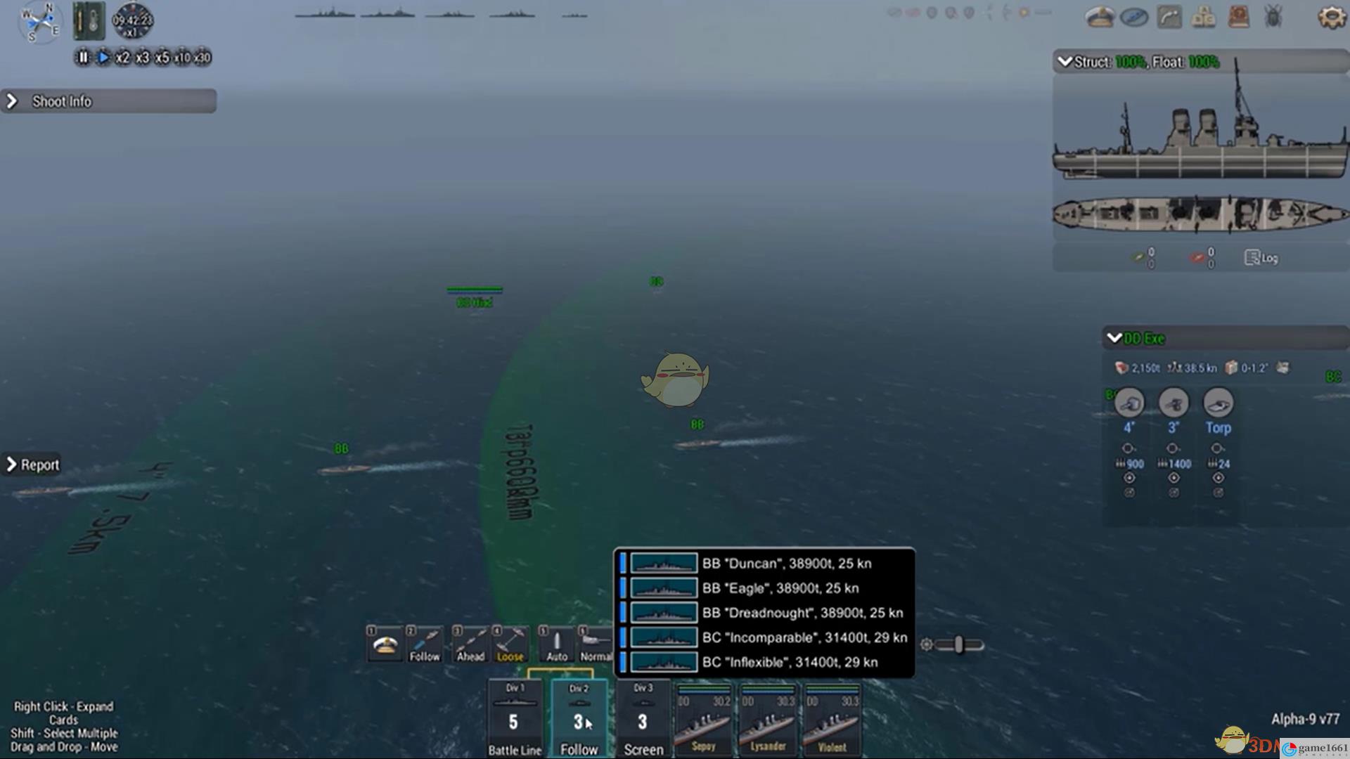 跟隨:選擇一個單位,按住ctrl鍵並右鍵單擊另一個單位。船舶將在非常近的距離內從後面跟隨目標單位。多個分區相互跟隨,形成一個長線編隊。或者,選擇單位,按下「跟隨」按鈕,並以另一種方式從介面中選擇目標單位,多選擇幾個單位並選擇一個目的地。這些單位將形成一條直線並相互跟隨。