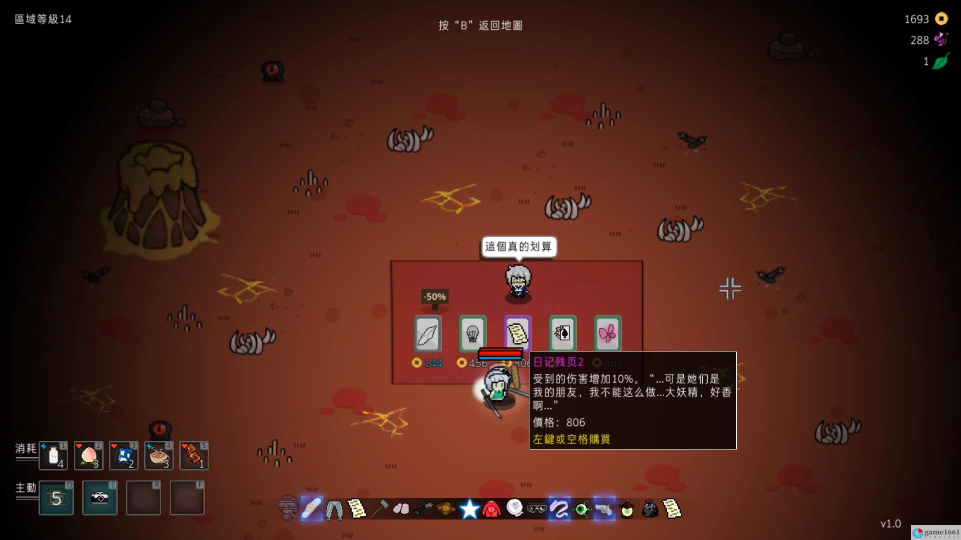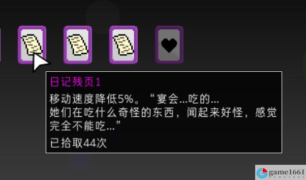 既然有日記殘頁1,那就有日記殘頁2,總共有3頁,2跟3在關卡過程中會出現,主要出現在打倒BOSS的箱子裡,還有霖之助出來賣商品的時候會出現。