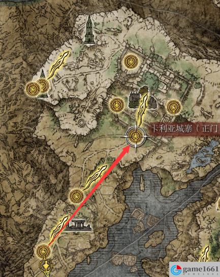 第二幅圖有更簡單的走法,先去學院門前鎮的賜福拿地圖碎片,然後按地圖引導稍微偏北一點的方向可以找到個亭子,地圖上的標記是個圓圈中間有個實心圓點,亭子裡有個傳送門可以直接傳送到利耶尼亞北岸的地圖碎片點上,這是開這整片圖最快的方法。
