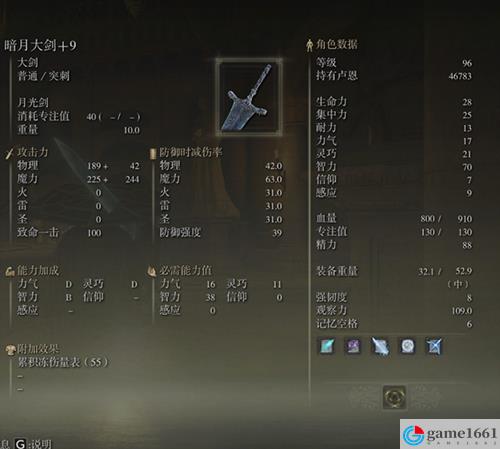 月光大劍的優點:這把武器在自身高額智力的加成下,傷害十分的恐怖,而自身魔力與物理的雙重混合傷害下,足以應對大多數場合,是游戲中當之無愧的最強魔法大劍!