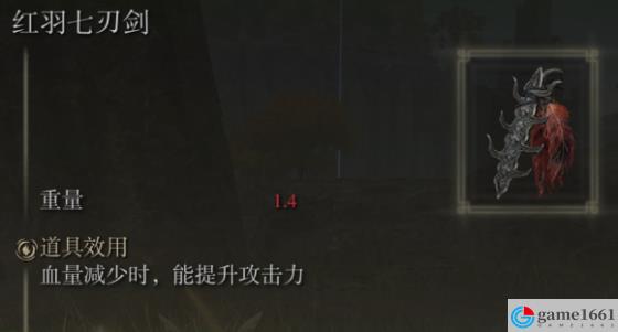 紅羽七刃劍 血量為20%或者20%以下時才會提升攻擊力,無論血量多少統一提升20%傷害