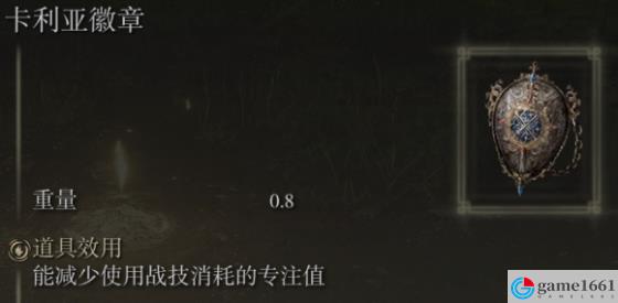 卡利亞徽章 減少戰技最低20%到最高25%所需專注值的消耗