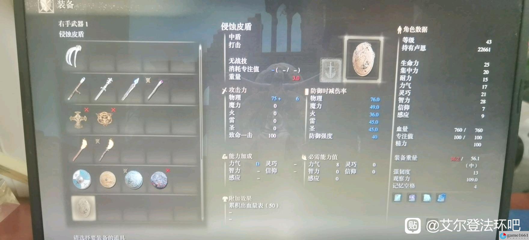 《艾爾登法環》中的侵蝕皮盾是游戲里非常好用的獨特盾牌,這個盾牌沒有百分百物防,抵擋力也不算高,而它唯一的優點就是能夠給敵人加出血效果,而這個盾只需要配合上出血武器就可以快速打出敵人的出血效果。