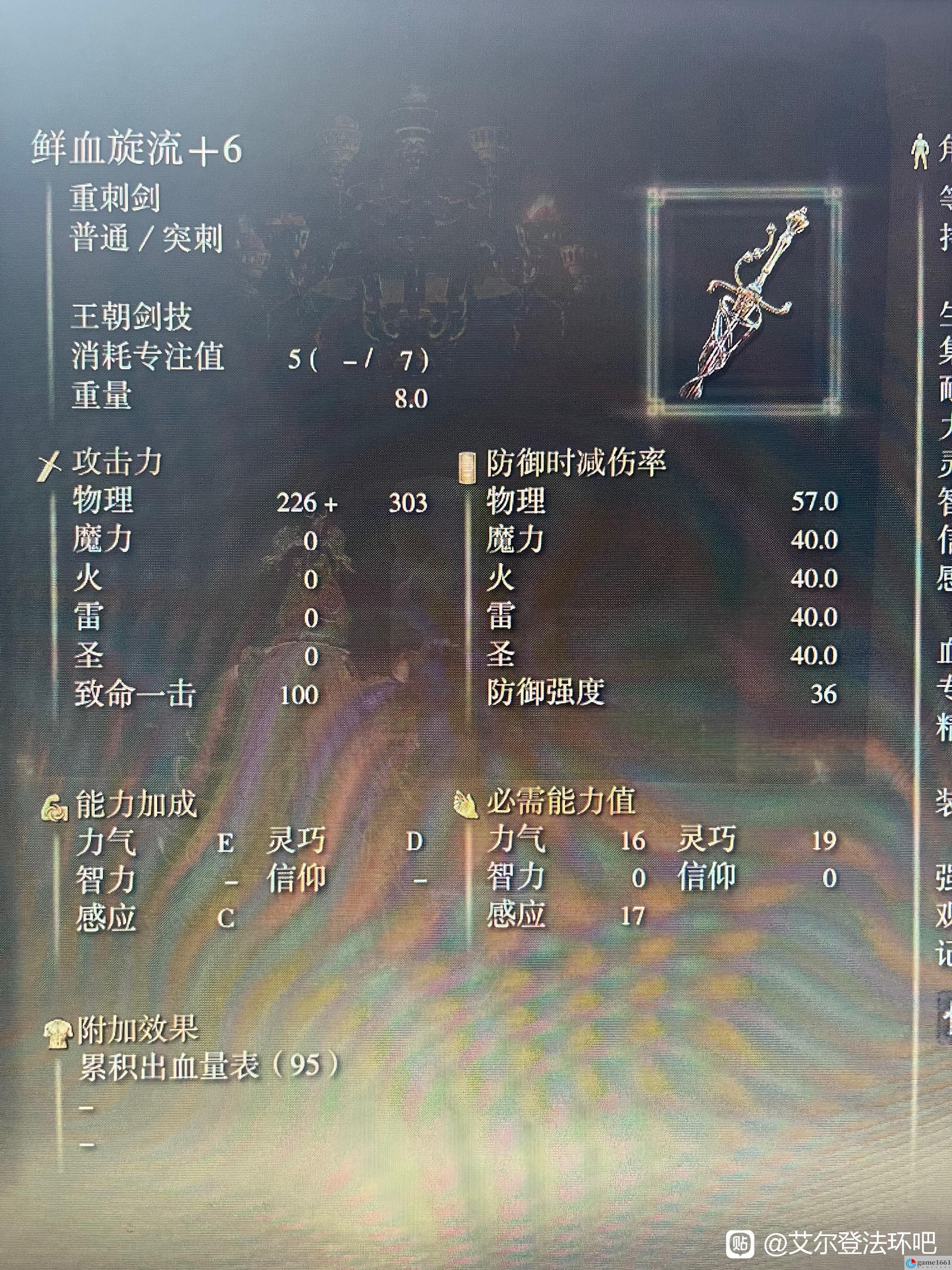 右上角穿林大橋和豐饒森林那兩個火往前是小黃金樹,小黃金樹兩邊個有一個廢墟,一個廢墟的地牢是法術,另一個就是這把刺劍 被蛇人圍著的是放法術的地牢,另一個被蠕蟲圍著,裡面有個很垃圾的人行boss,打死就掉鮮血旋流。