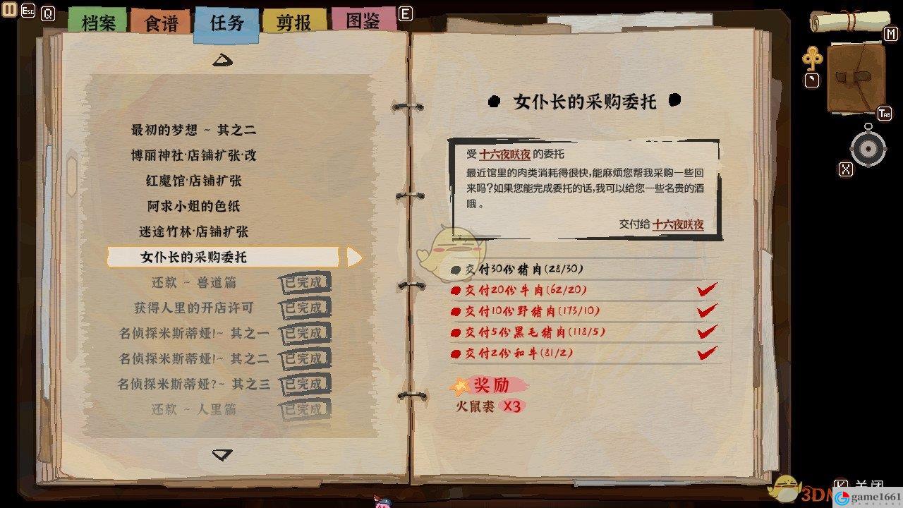 贈送食譜:露水蒸蛋、香炸蟬蛻、幻曇花糕(按獲得順序【LV1-2、LV2-3、LV3-4】排列)