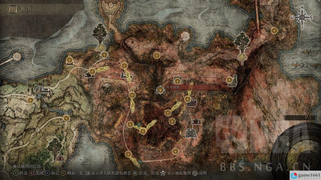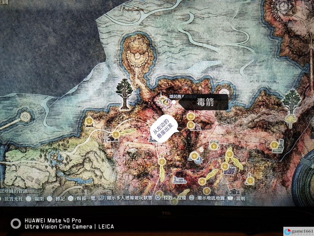 毒弓可以沿著上面位置一路向下會看到一條大裂谷,沿著裂谷向南會看到一顆從懸崖長出去橫貫裂谷的樹,跳上去在樹盡頭有個洞穴,篝火名:廢棄洞窟,下去全是猩紅詛咒的沼澤,有個光點撿到。
