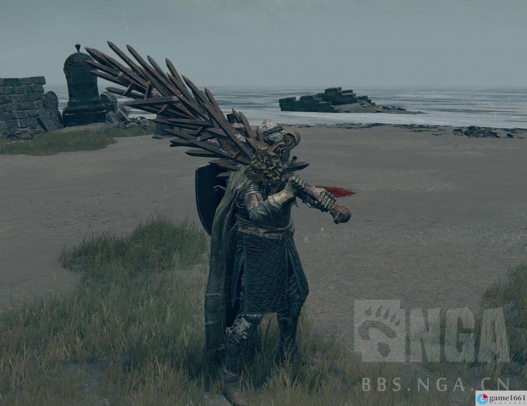 如果有巨劍控覺得嘎子劍單調的話我這還遇到個40力的浮誇大劍,位置在地圖最南側,需要穿過摩恩城,最下方島嶼有個叫混種獅子的Boss掉落。Boss很吃硬體,20血最多抗兩刀,15耐能擋三刀。