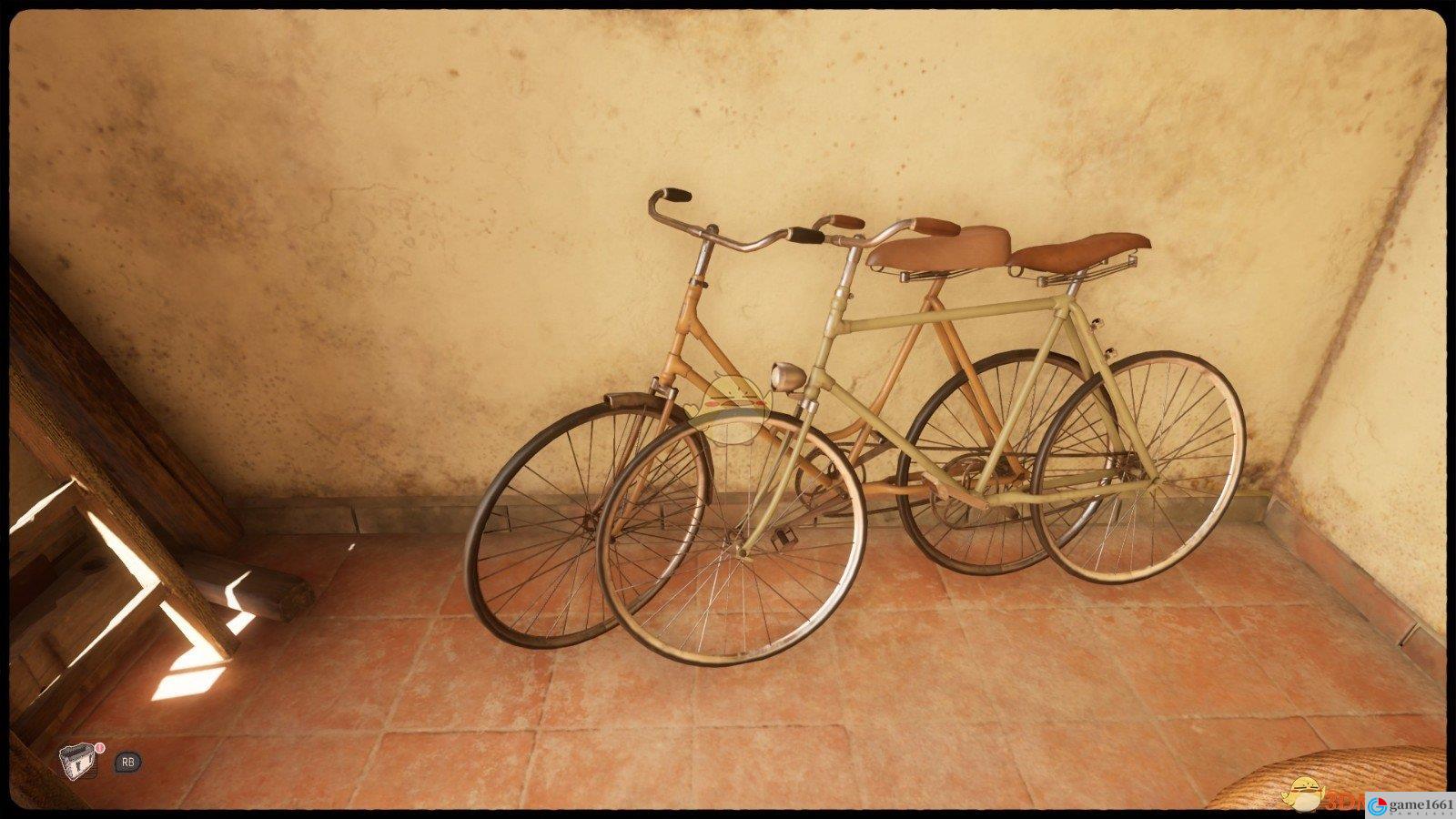打氣筒在別墅緊鎖的大門旁的自行車上,在最後一章必須修好,不會錯過