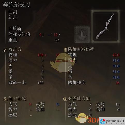 是一把比較厲害的武器,位置也比較偏僻,屬於中後期的神器,物理傷害很高,其它數值面板一般,靈巧還行,喜歡玩長刀可以試一下,偏向盜賊的武器。