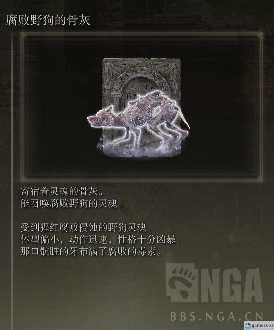 《艾爾登法環》中是有一些非常厲害的骨灰的,比如針對人型BOSS的三狼骨灰,能夠很有效的糾纏人型BOSS,而腐敗野狗骨灰就是其中比較獨特的一種,動作迅猛,攻擊附帶中毒效果,很多BOSS的攻擊都很難打中它。