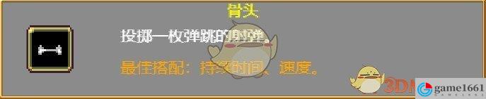 骨頭(Bone):投擲一個會在擊中敵人後或在邊緣處反彈的骨頭