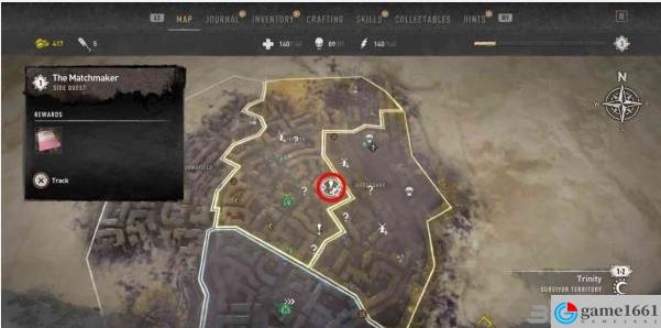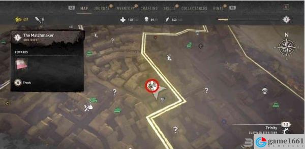 同時朱麗葉特應該也會以「!」圖標的形式自動標記到地圖上,但偶爾會有BUG,出現任務名稱不全、圖標不顯示等情況。如果沒看到任務標記的話,就先離開,過一會再來找找看。