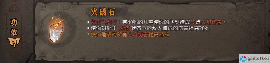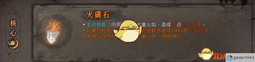 《暖雪》中的聖物火硝石是游戲中比較少見的火屬性聖物,用起來效果還是很不錯的,其中比較好用的就是核心火硝石,效果是多了個主動技能,可以向周圍噴出大量火焰,造成88點火焰傷害。