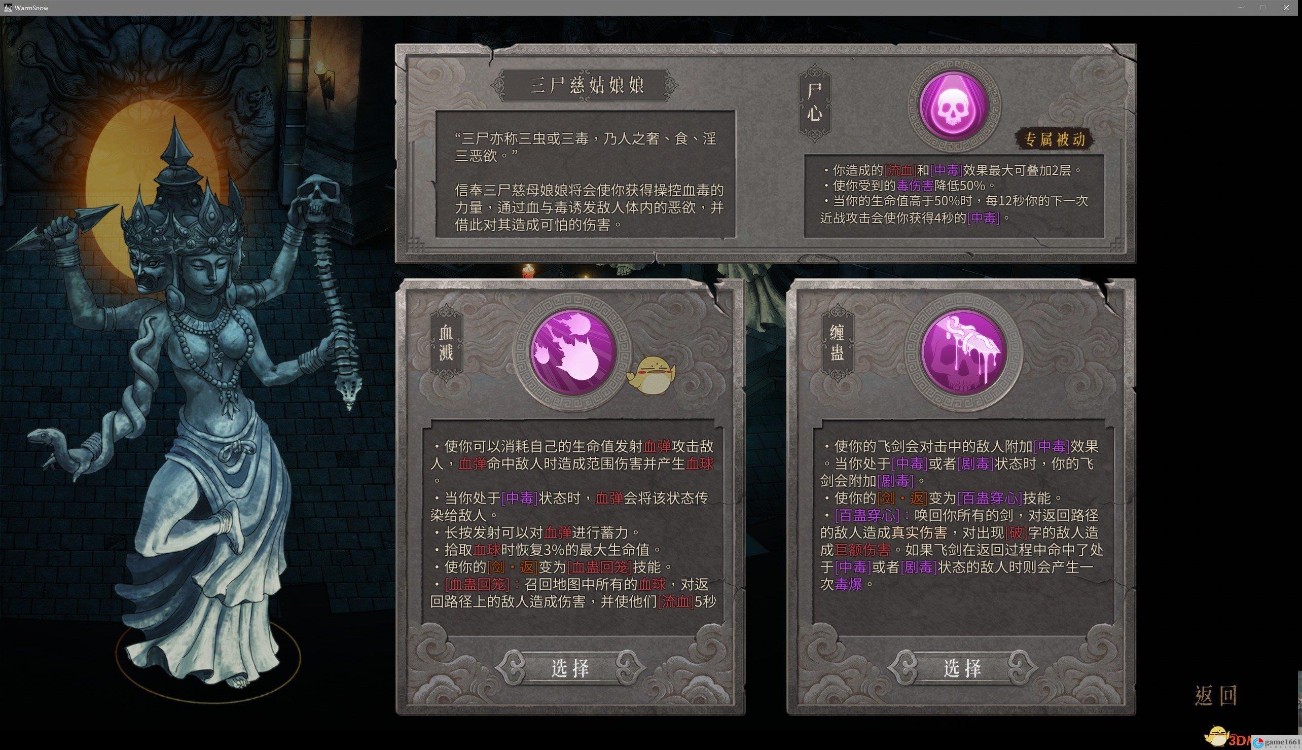 《暖雪》中的最後一個職業想要解鎖就需要獲得一個三屍慈姑娘娘雕像,就是第6個門派毒系流派,需要先殺鶴之章的最終BOSS,弄到雕像之後就需要殺兇兆,七個兇兆就可以解鎖了,毒流派就是這樣。