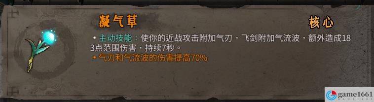 《暖雪》中的聖物凝氣草是游戲里非常有用的聖物,一共有四種,比較獨特的就是核心凝氣草,效果是多了個主動技能,可以使你的近戰攻擊附加氣刃,飛劍附加氣流波,額外造成183點范圍傷害,持續7秒。