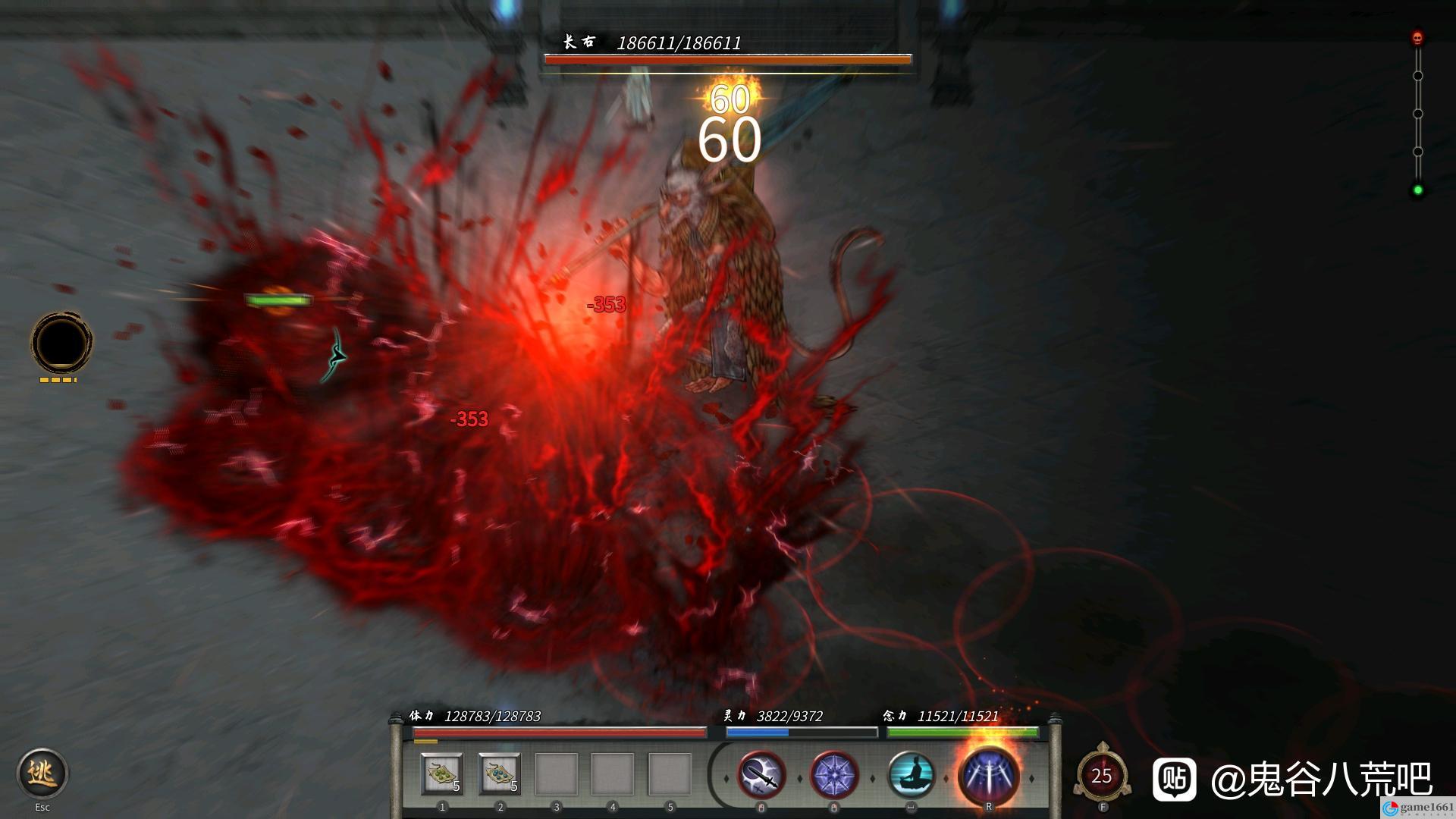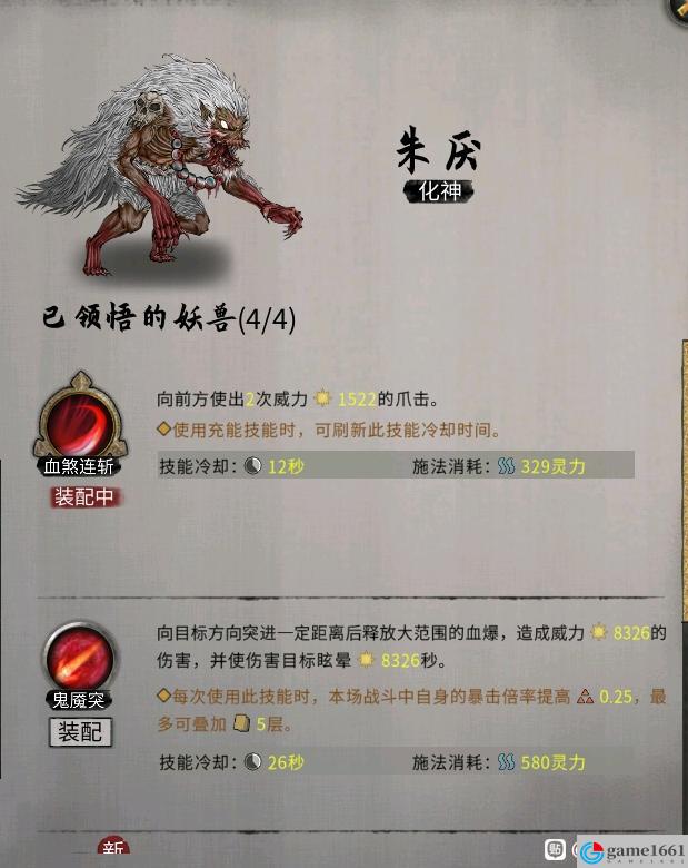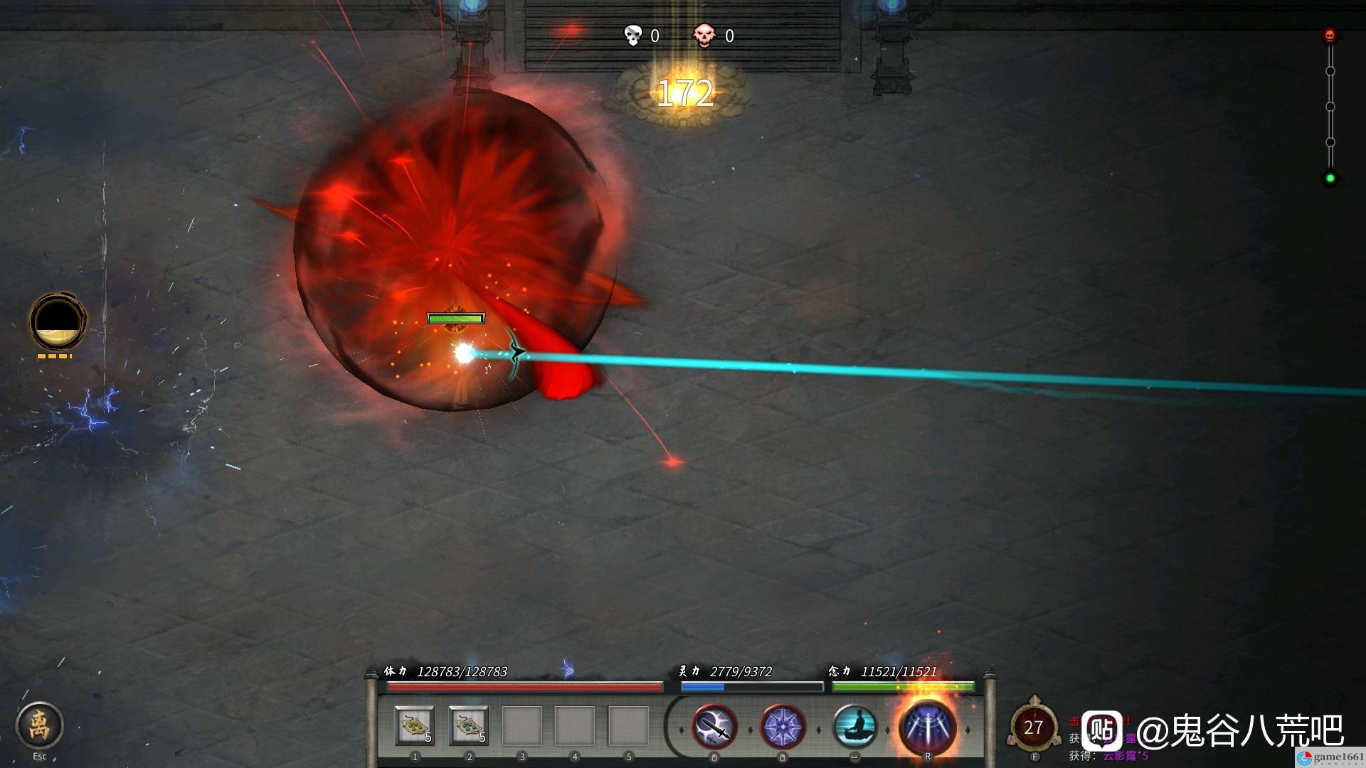 《鬼谷八荒》中的昊天眼是游戲里非常強大的神器,功能也有很多,比較重要的一個能力就是學習妖獸的技能,比如朱厭的技能血煞連斬、鬼魘突、猩紅歸路和血之狂亂,血之狂亂可以在自身周圍爆出一團血球,持續3秒,造成威力14270/秒的傷害。