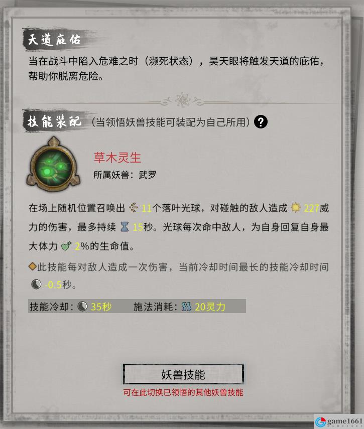 《鬼谷八荒》中的昊天眼是游戲里非常強勢的神器,可以在和大妖獸戰斗的時候,有一定的機率學習到其施放的技能,比如武羅的技能草木靈生,可以在場上隨機召喚很多個光球,然後造成很高的傷害。