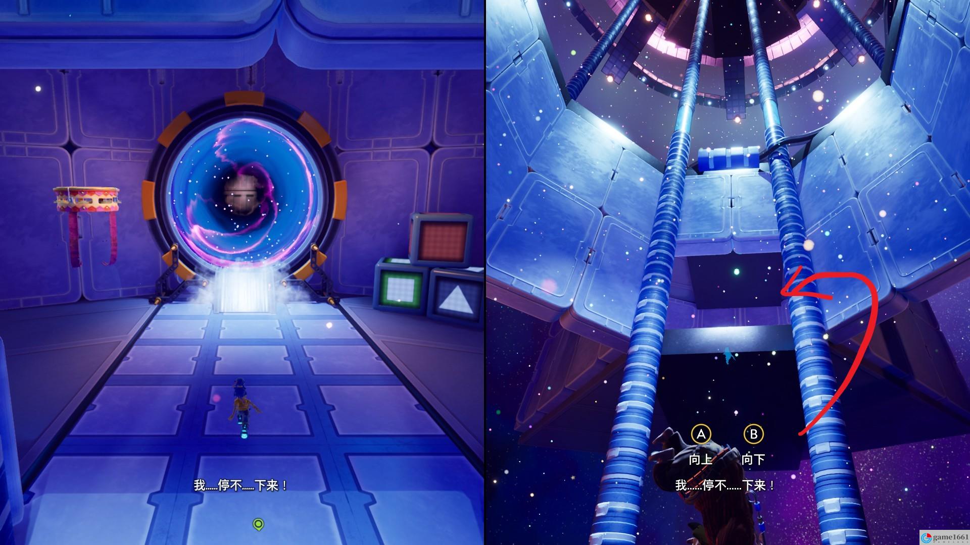第一次進入太空升降機後,不要一路浮到頂,在第一層底下有一個隱藏房間,進入傳送門。