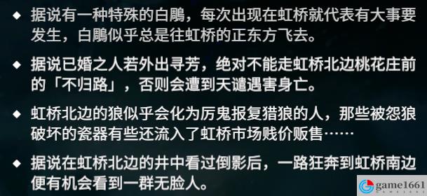 《天命奇御2》中的虹橋地區是有一個名為虹橋四奇的特殊任務的,但是很多玩家都不太清楚虹橋四奇特殊任務到底應該怎麼做,其實虹橋四奇特殊任務想要觸發需要再開封主線觸發後,自動觸發懷湘傳聞,然後找到糖果販詢問隱藏商品,最後回虹橋找肉攤老闆買豬肉片就行了,更多如下。