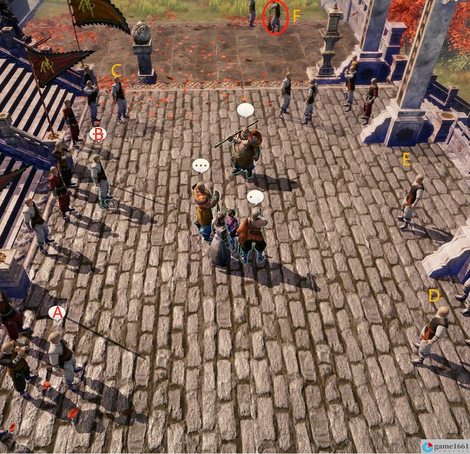 詢問A僧→C僧【殷芙好可愛讓她問】→找回殷芙→F僧→對殷芙出示早鐘→E僧→D僧→對話殷芙取得同意書→對D僧出示同意書【經書遭竊的情況】→繼續追問【早鐘】→對話殷芙【來歷】→繼續追問【關於目的】