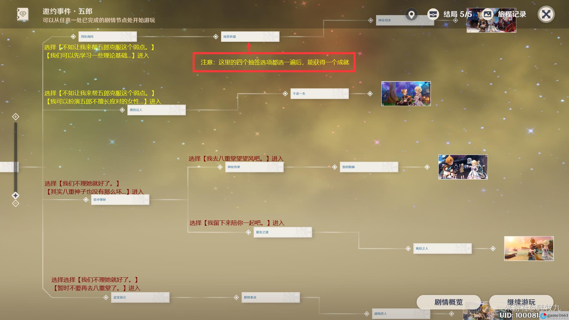 五郎邀約里的三個成就,除了上文中提到的選擇4次不同的抽簽選項,剩下兩個正常完成所有結局就可以獲得
