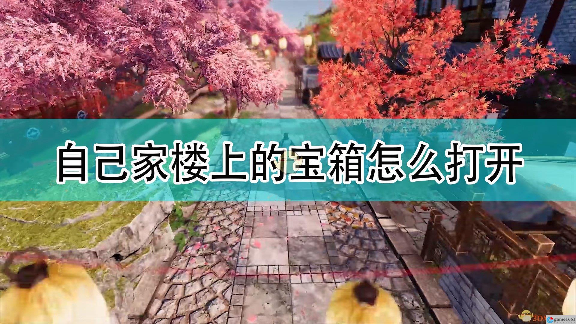 自家樓上這里有個寶箱,要去自己家這個位置和任彩家拿一個梯子,就可以上去了,上去之後用鋸齒鑰匙就能打開寶箱
