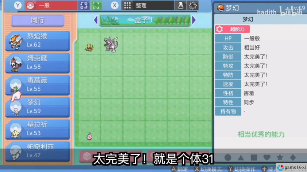 打開背包,按+鍵,就可以查看寶可夢的個體值信息了。