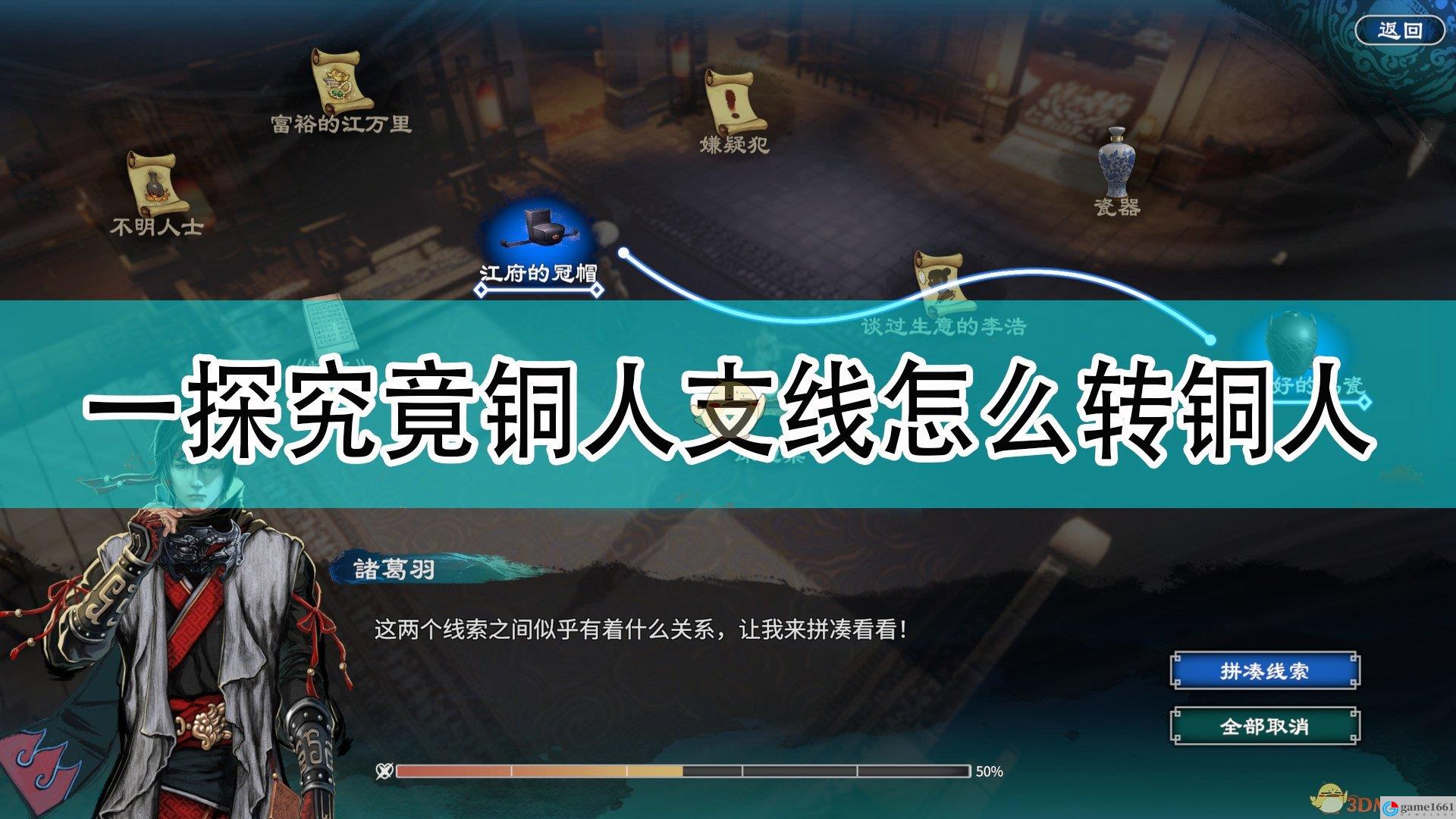 一探究竟銅人支線任務啟動機關三,他讓我轉動銅人,只需要鼠標左鍵點住就可以轉動,右鍵推