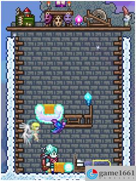 屋子兩端墻面放一層木平臺,再用錘子敲一下,造成單向墻,方便晚上打怪。