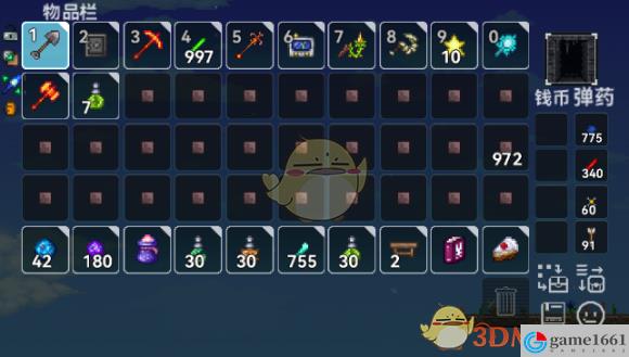 2.攜帶飛豬、虛空袋與釣魚必要物品,將物品欄清空後使用垃圾占滿所有背包欄位