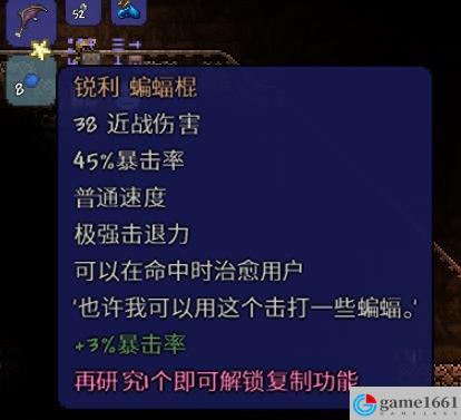 《泰拉瑞亞》中,隨著游戲的更新。游戲還增加了不少的武器,這些武器都還算可以,可是玩家不知道該怎麼獲取,下面就給大家帶來蝙蝠棍獲取方法大全,希望可以幫助大家,更多如下。