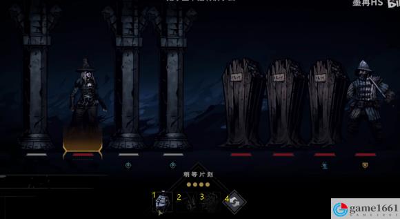 守衛每回合監/視兩排並隨機抽一排查看,同時會守護一個棺/材,主角被發現會增壓。要點是不被發現的情況下用4技能位移到第一排,接下來可以用3技能開棺/材,也可以2技能消滅守衛,壓力過高可用1技能減壓(有冷卻時間,不能一直用)。