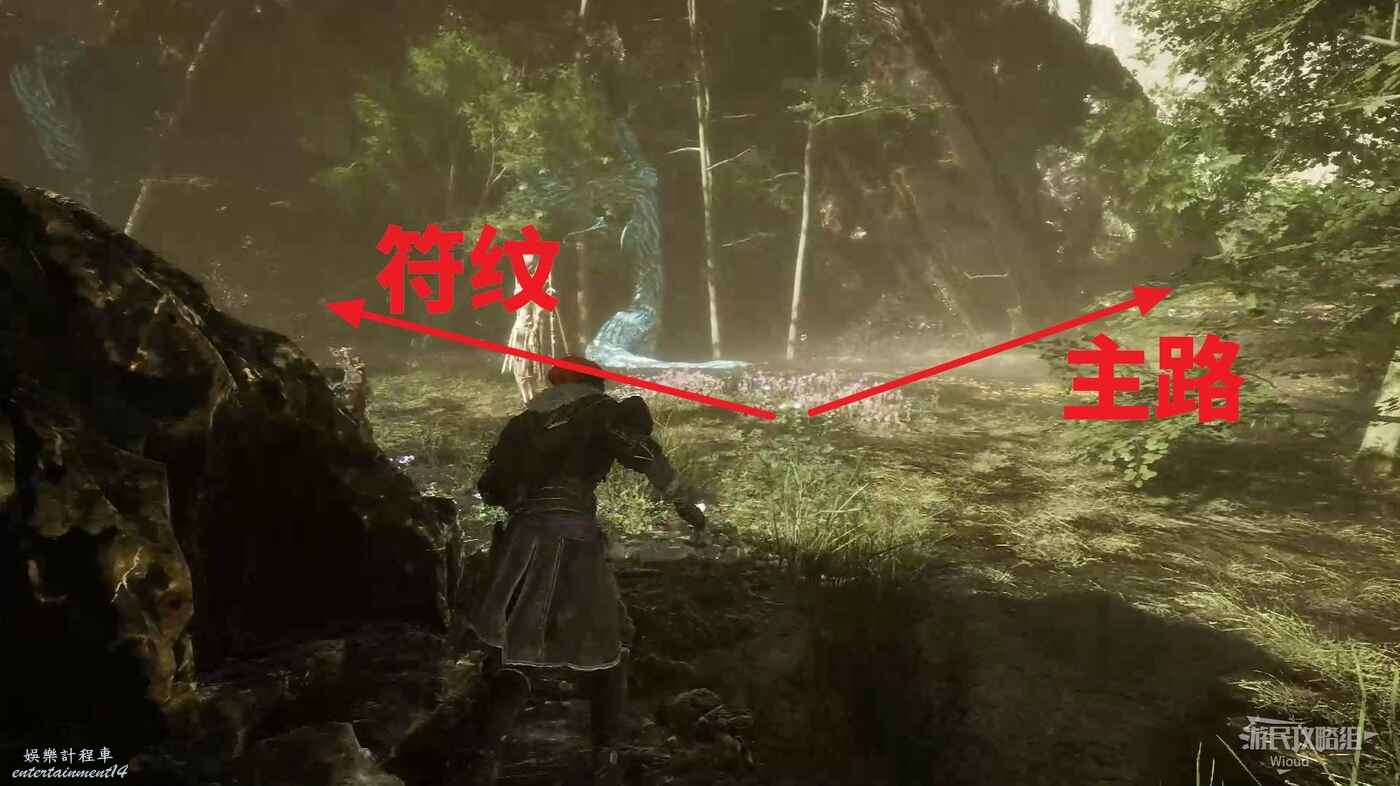 往來時的方向看,左側可找到最後一個能量塊,拾取裡面的道具點可獲得符紋【助力格擋】