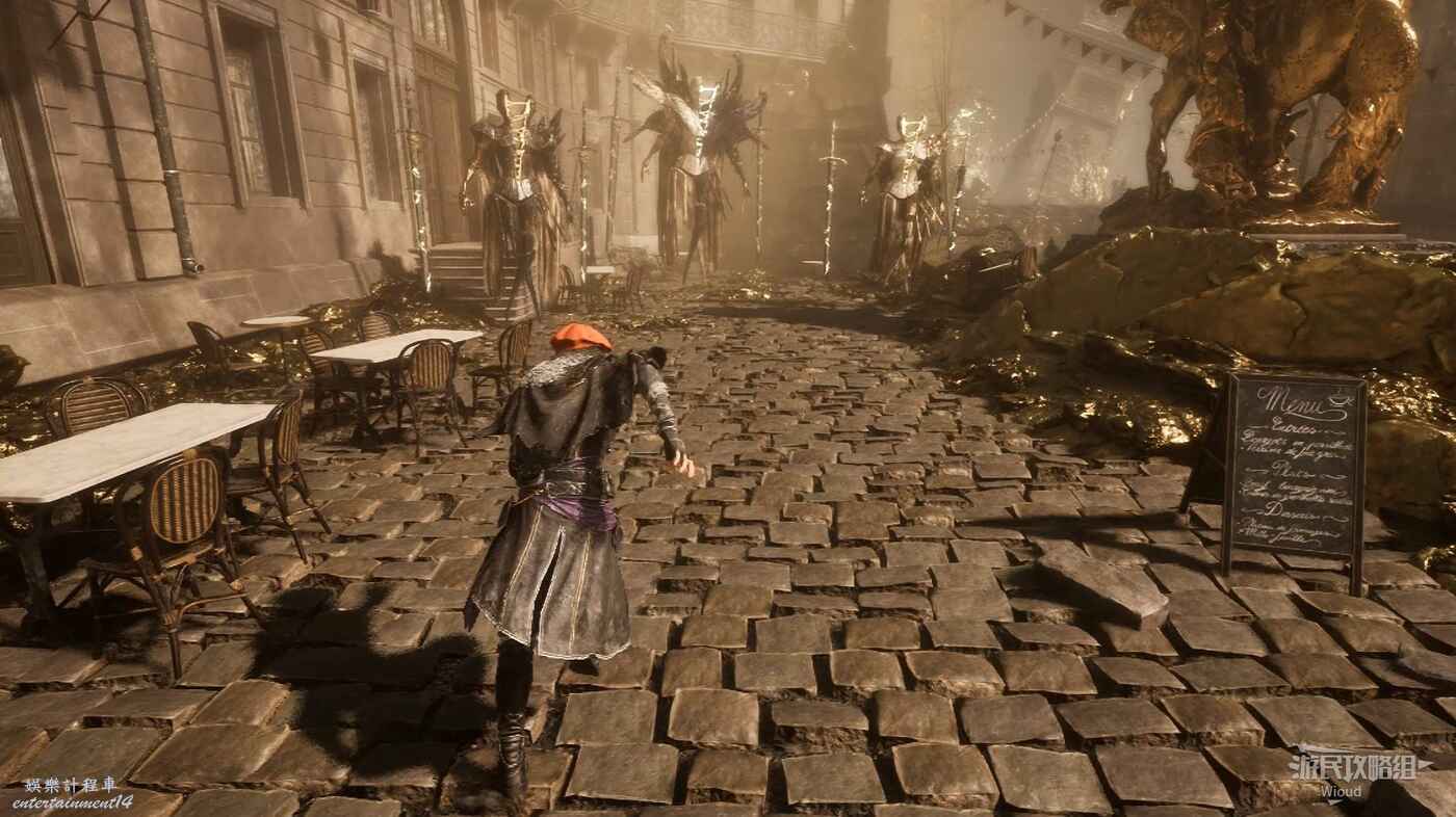 啟動起始點左側的旗幟,擊敗中間噴泉左側的敵人可升級極限格擋。