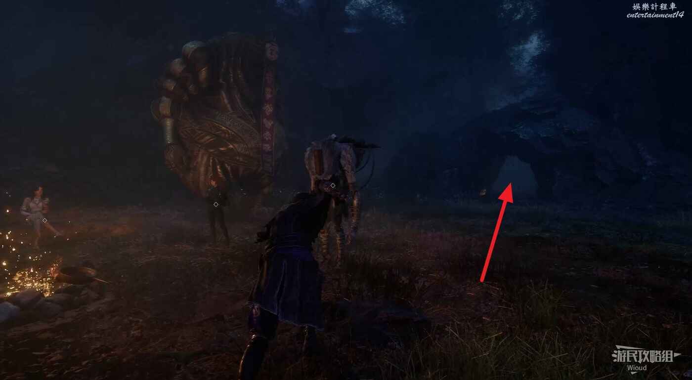 往下圖所示的洞口裡面走,藝策人來到營地後就位於裡面盡頭。
