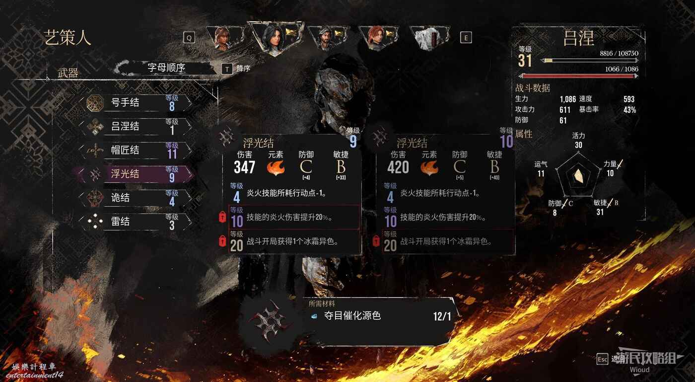 與藝策人對話選擇【升級武器】,然後消耗對應的材料對武器進行升級。