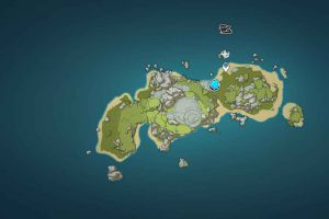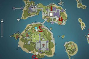 危危島有過去和現在兩種樣子,大地圖上的樣子都放在下面啦,大家可以對照一下。 過去的危危島 現在的危危島 除此之外,大家可以先準備好一份甜甜花釀雞,後面會用到。 我們首先來到此處,通過水占鏡回到現在的危危島...